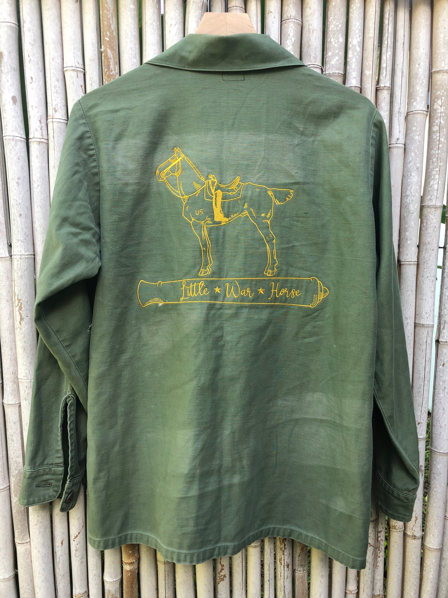 Each of our vintage military jackets are sourced from around the world, hand selected by myself, and embroidered with our special caparisoned horse in remembrance of all who have served, 2 and 4 legged alike. Every piece is unique and named after a brave and true war horse, making it a special piece to cherish for years to come.