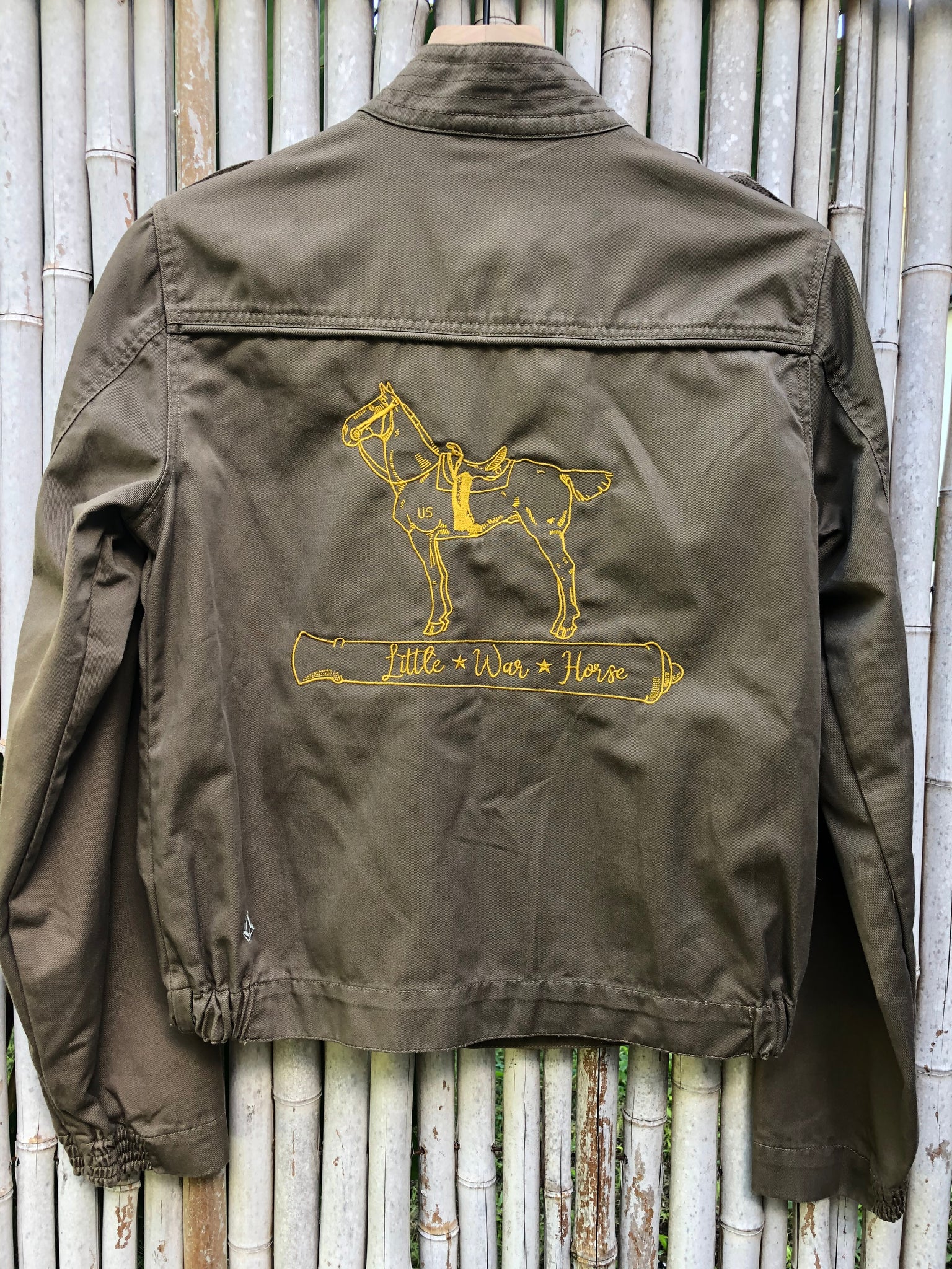 Each of our vintage military jackets are sourced from around the world, hand selected by myself, and embroidered with our special caparisoned horse in remembrance of all who have served, 2 and 4 legged alike. Every piece is unique and named after a brave and true war horse, making it a special piece to cherish for years to come.